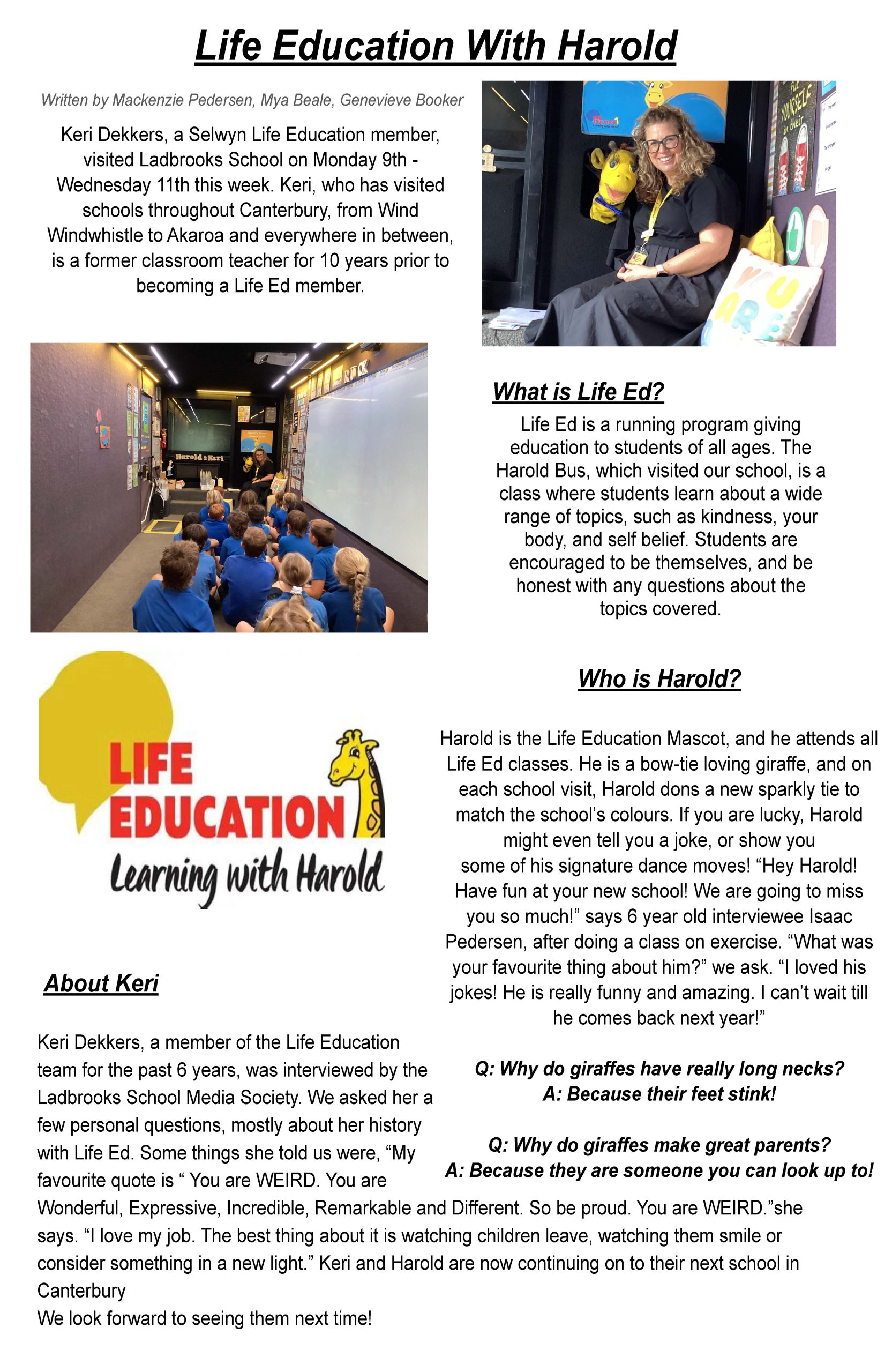 From the Classroom Recently, students from Ladbrooks School wrote an article about their experience with Life Education and meeting Harold. Hearing directly from tamariki about what stood out to them — the lessons, the laughter and the learning — reminds us why this work matters. February 23rd, 2026 News